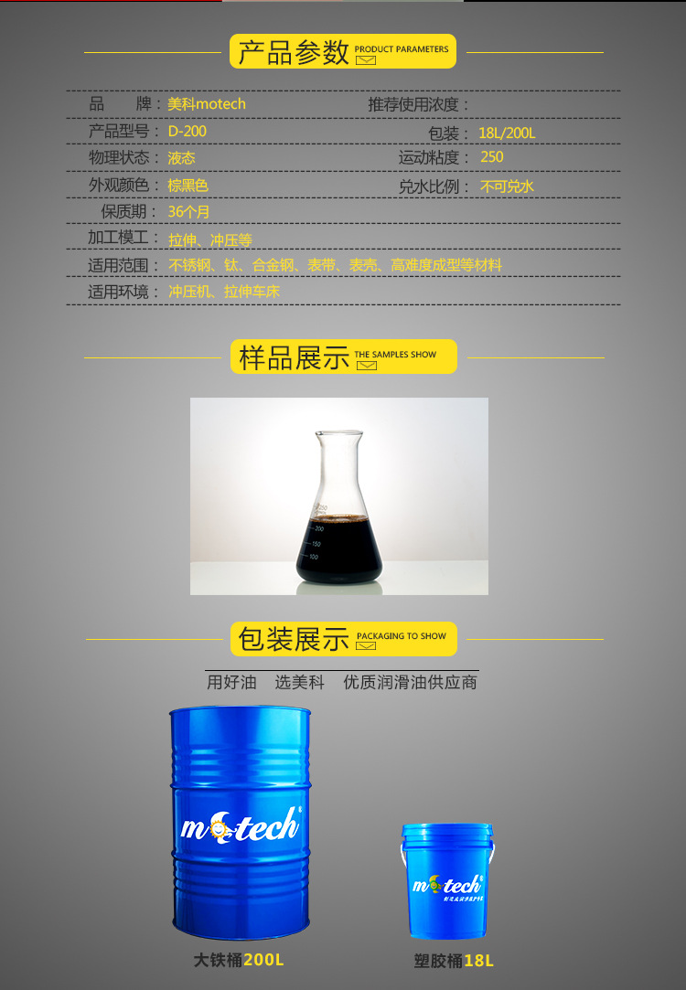 重负荷不锈钢的拉伸、冲压、冲切、引伸等特高难度的加工。可直接使用,亦可视加工作业及金属材质的厚薄程度,可以稀释使用,以降低油料成本。